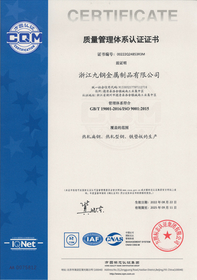 浙江九鋼公司于2015年加入省冶金協(xié)會,并成為扁鋼國家標(biāo)準(zhǔn)起草制定的成員單位之一。
